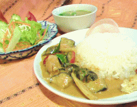 ![]() カレーセット 「日替わりのココナッツカレー、 おかず、サラダ、スープ付」 1000円 |