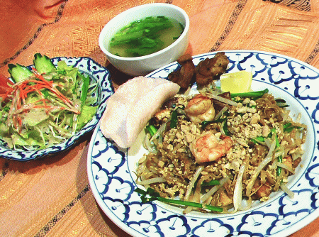 ![]() パッタイセット 「大人気の焼きそばのセット おかず、サラダ、スープ付」 1000円 |