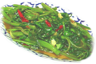 | パックブン・ファイデーン "PAK BUN FAIDAEN" 空芯菜の炒め物 「屋台の炒め物の代表選手、歯ごたえがたまりません」 |