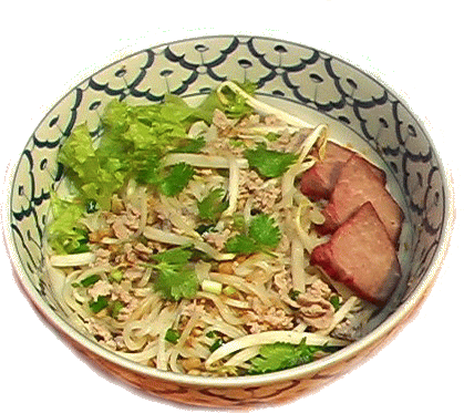 | クウェイティオ "KWEY TEAOW NAAM" タイのラーメン 「お米の麺を使ったラーメンはタイ各地どこへいっても食べられる お料理です。がらスープのあっさりした味付けは日本人の 好みにもきっと合います。 細麺、幅広麺、春雨、バミーの4種類から 麺を選べるのもうれしいですね。」 |