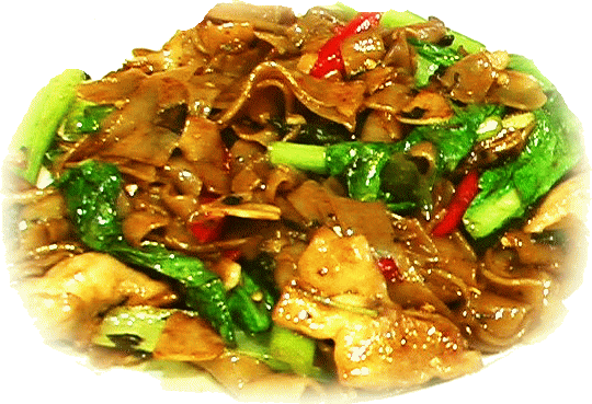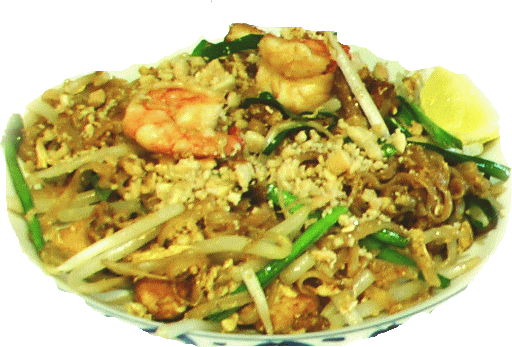 | パッタイ "PAD THAI" タイの焼きそば 「実はタイ料理の中で最も人気の高いお料理なのです 甘みと酸味としょうゆ味、さらにさまざまな具材がが絡み合う 複雑な味わいが日本人のみならず外国人のファンも多いのです。」 |