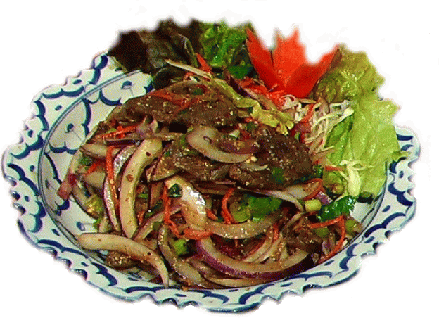 タイ料理で一般的にサラダと思われている「ヤム」ですが、 どちらかといえば和えものといった感じのほうが合っているかも知れません 辛酸っぱい味付けは食事の先付けとしてもピッタリです。 |